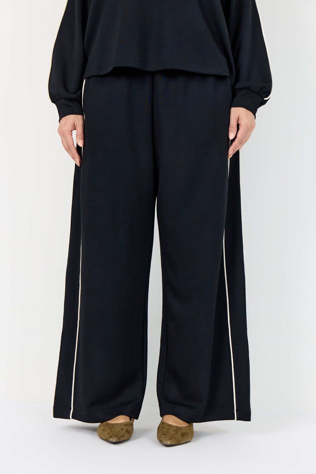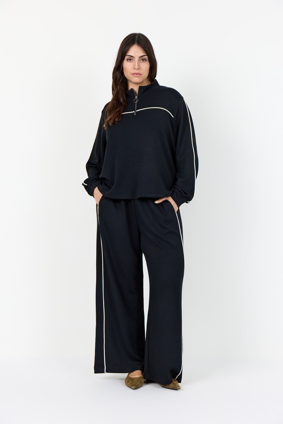 WA-SABINA 89 er pæne bukser fremstillet af 48 % modal, 48 % polyester og 4 % elastan. Bukserne har en afslappet pasform og striber i siden, som går til fuld længde. De passer elegant sammen med en enkel bluse eller en skræddersyet jakke for et raffineret look.