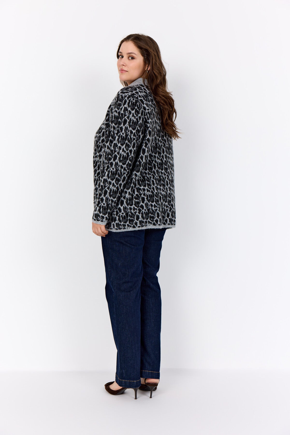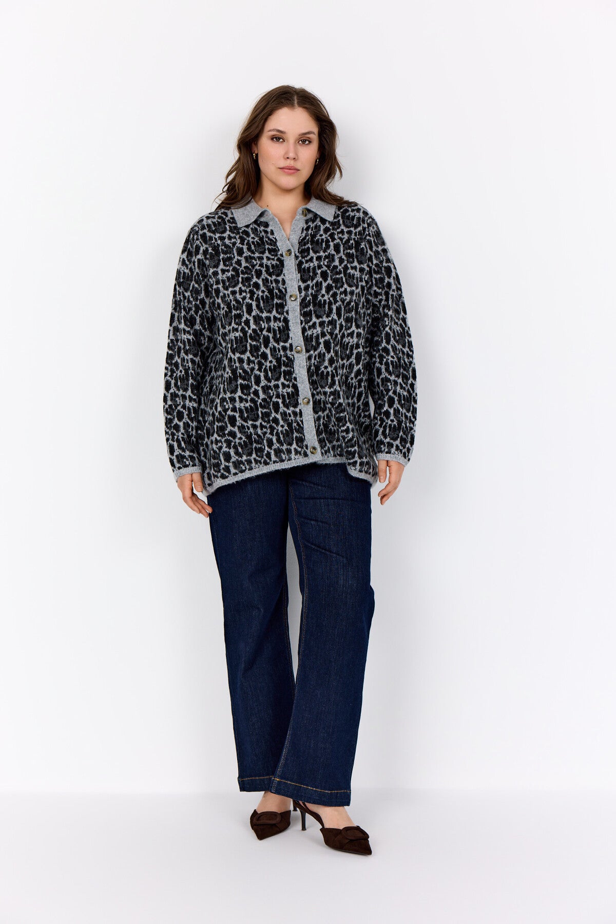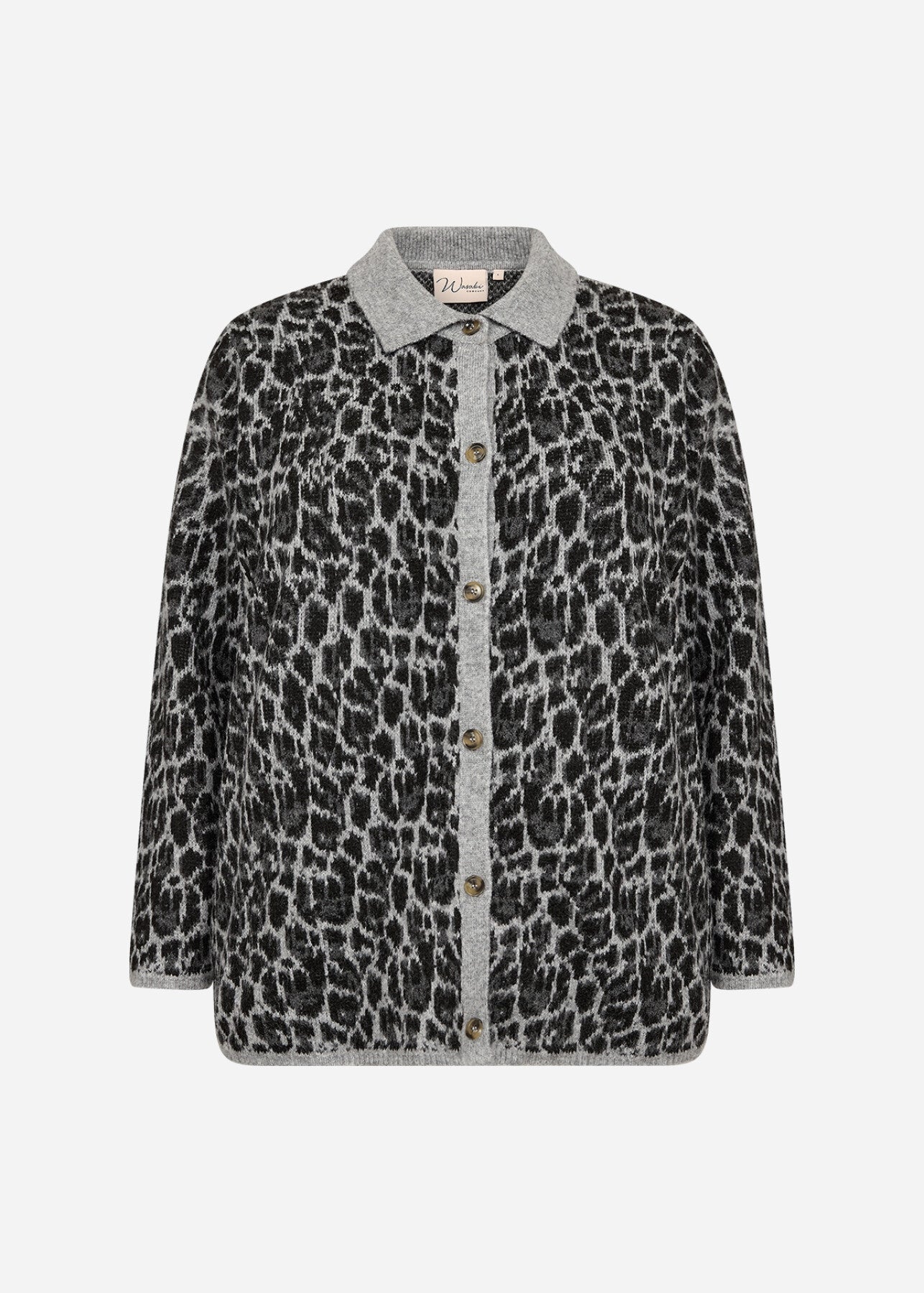 WA-NIMO 1 er en cardigan, fremstillet af 65% polyester, 19% nylon, 13% akryl og 3% elastan. Cardiganen har en klassisk krave, knaplukning og et dristigt dyreprint. Sæt den sammen med jeans og støvler for et stilfuldt, men behageligt look.