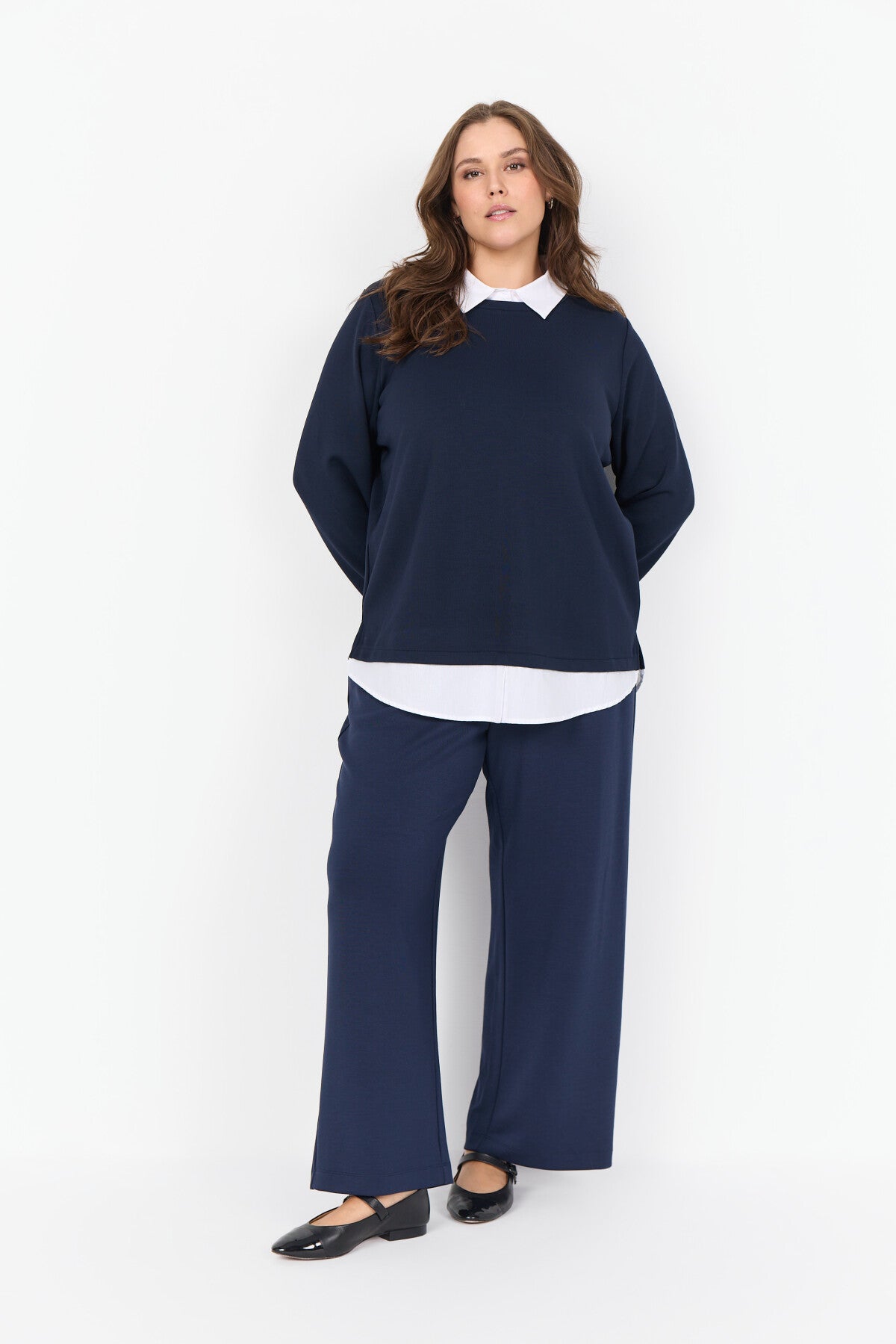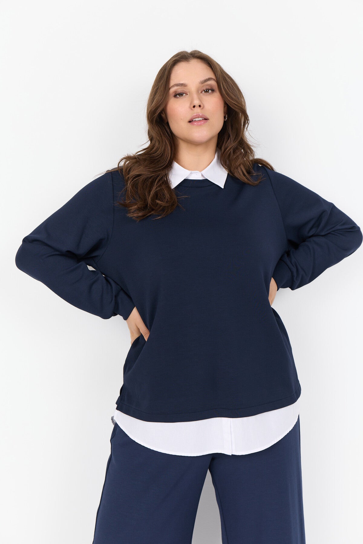 WA-SABINA 69 Bluse er fremstillet af 48 % modal, 48 % polyester og 4 % elastan. Denne elegante bluse har en kontrastfarvet krave med lag-på-lag-effekt, som giver et stilfuldt twist til et klassisk design. Sæt den sammen med skræddersyede bukser eller en elegant nederdel for et sofistikeret look.