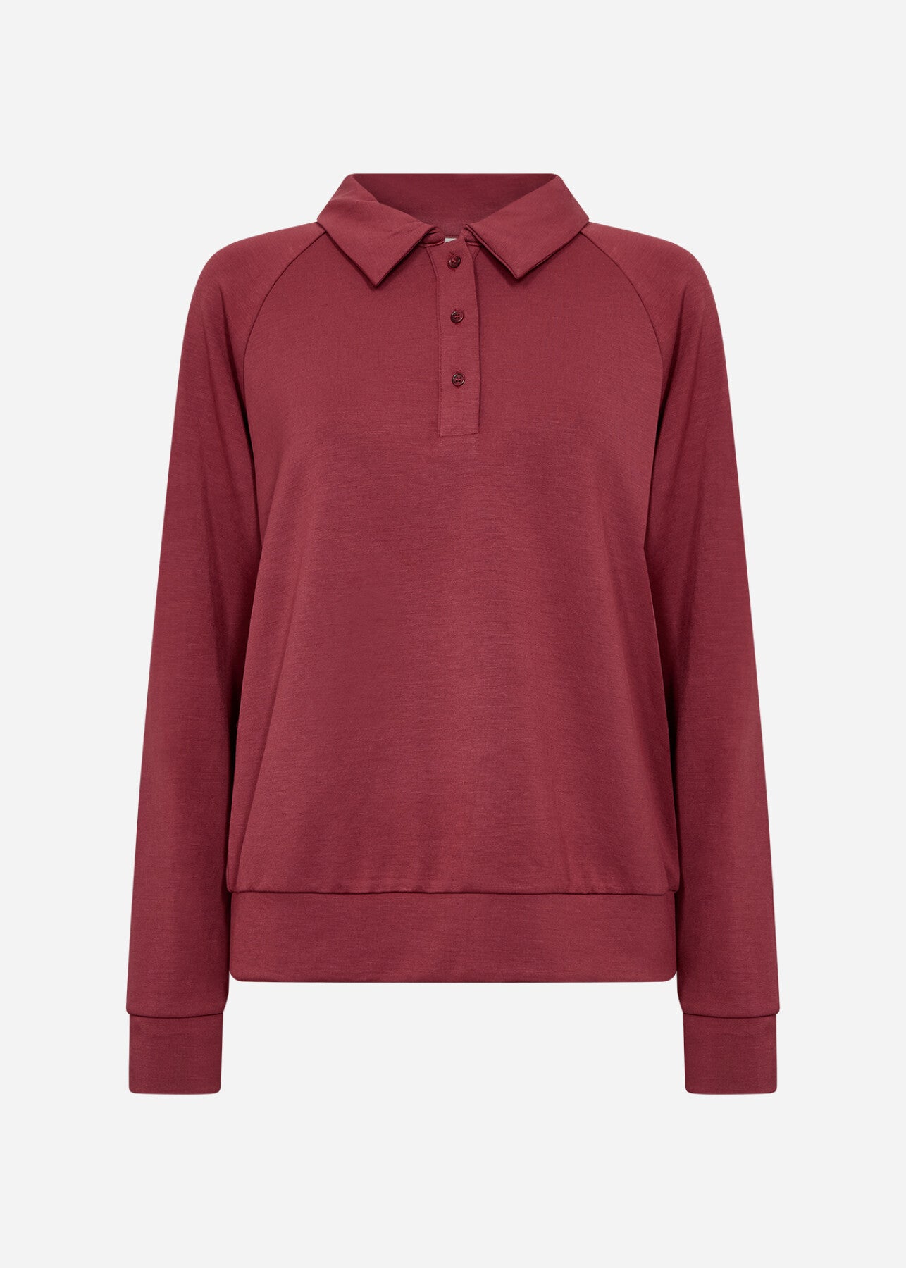 WA-SABINA 73 er en unik sweatshirt fremstillet af en blanding af 48 % modal, 48 % polyester og 4 % elastan. Sweatshirten har en klassisk polokrave, en knapstolpe, en afslappet pasform og ribkanter for ekstra komfort. Sæt den sammen med dine yndlingsjeans for et rent look, eller vores matchende sweatpants for et behageligt, men stilfuldt look.