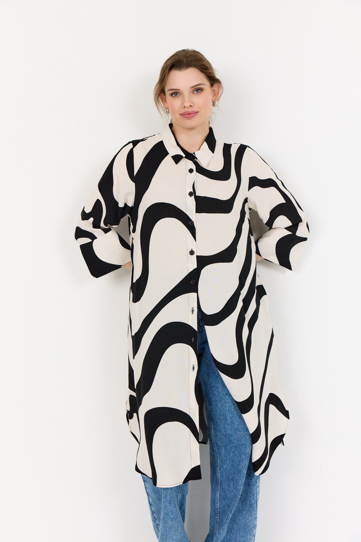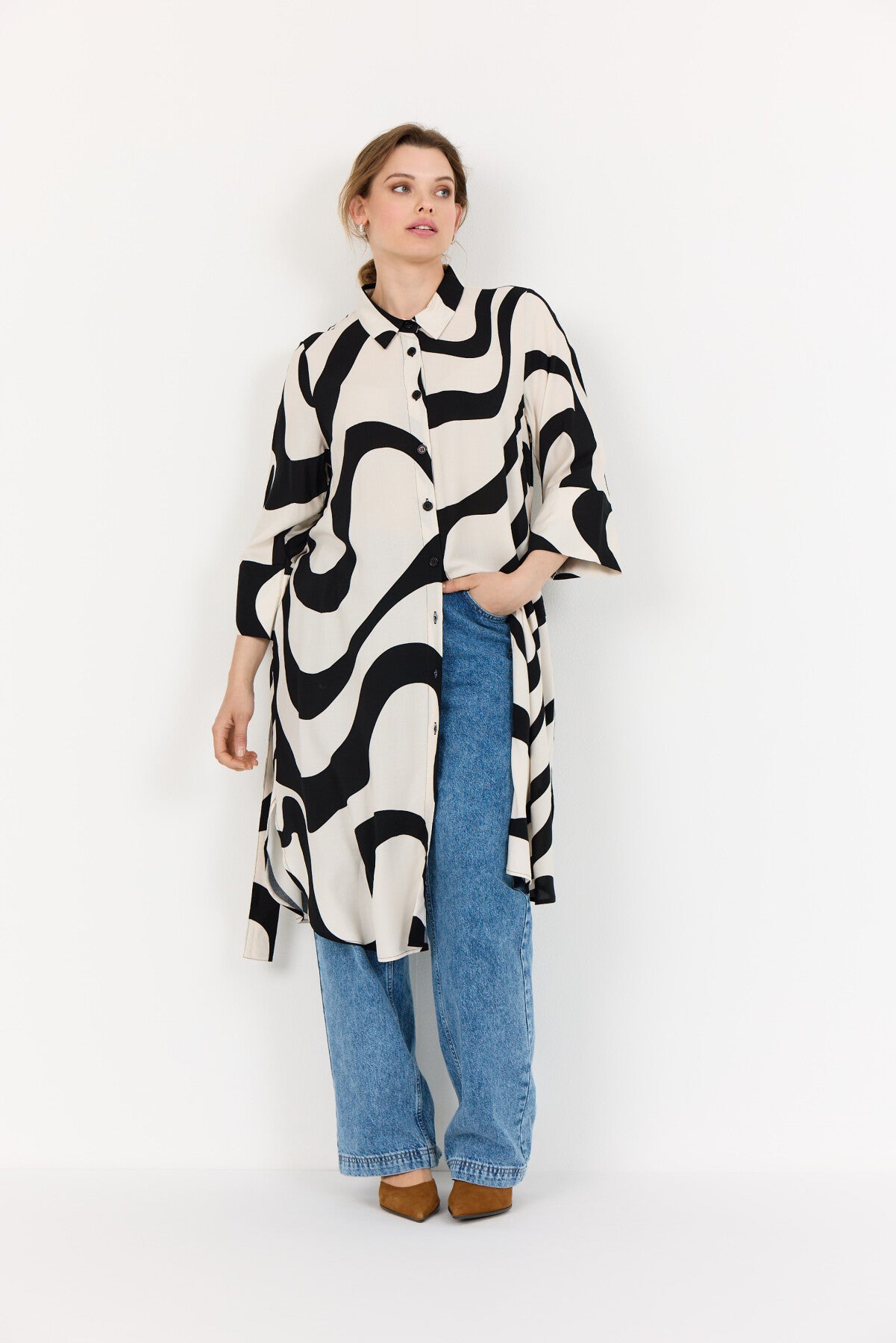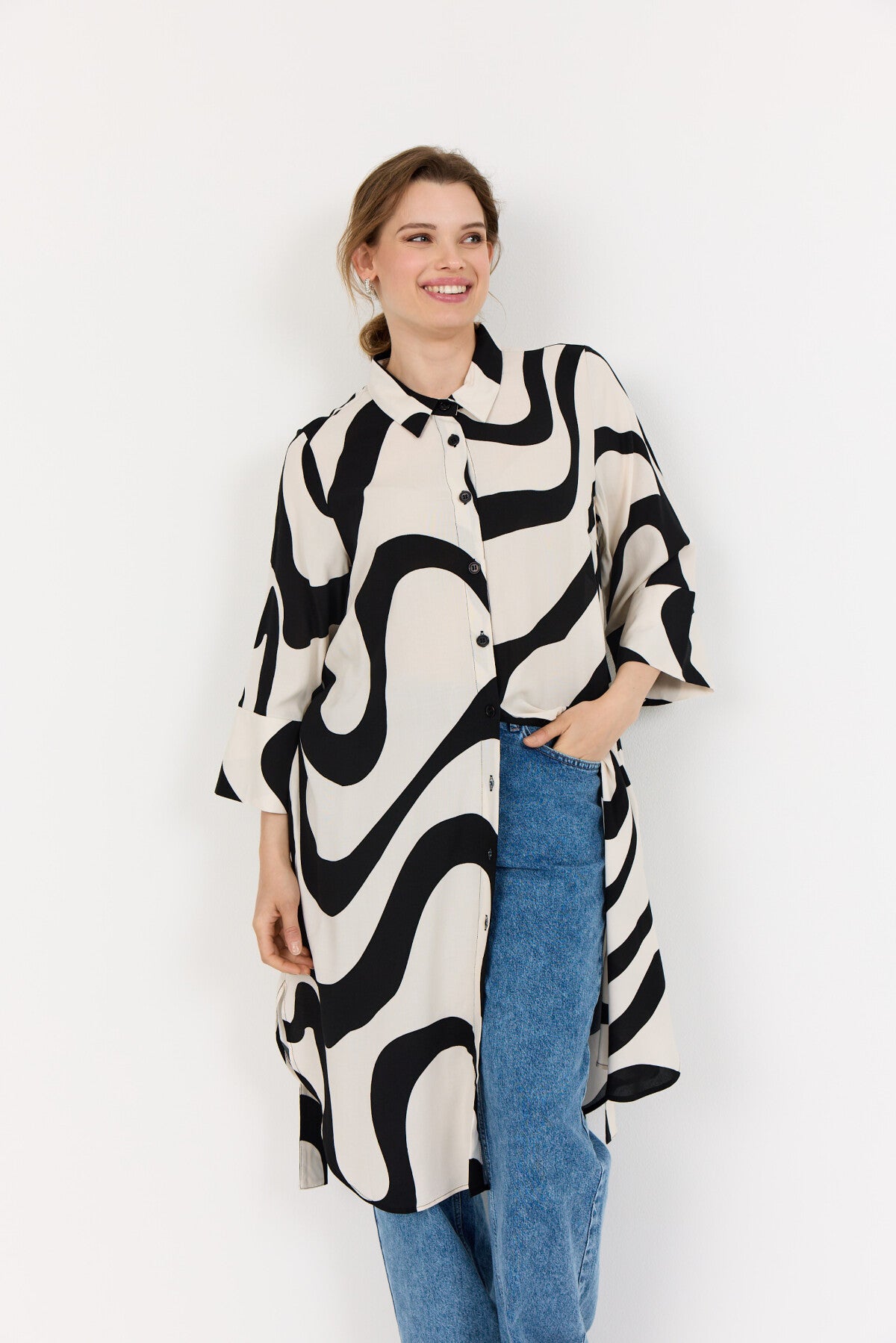 WA-CHANITA 3 er en feminin kjole fremstillet af 100 % LENZING™ ECOVERO™-viskose. Den har en klassisk krave, knaplukning foran, midilængde, 3/4-ærmer og et fedt grafisk print. Sæt den sammen med elegante sandaler eller ankelstøvler for et elegant look.