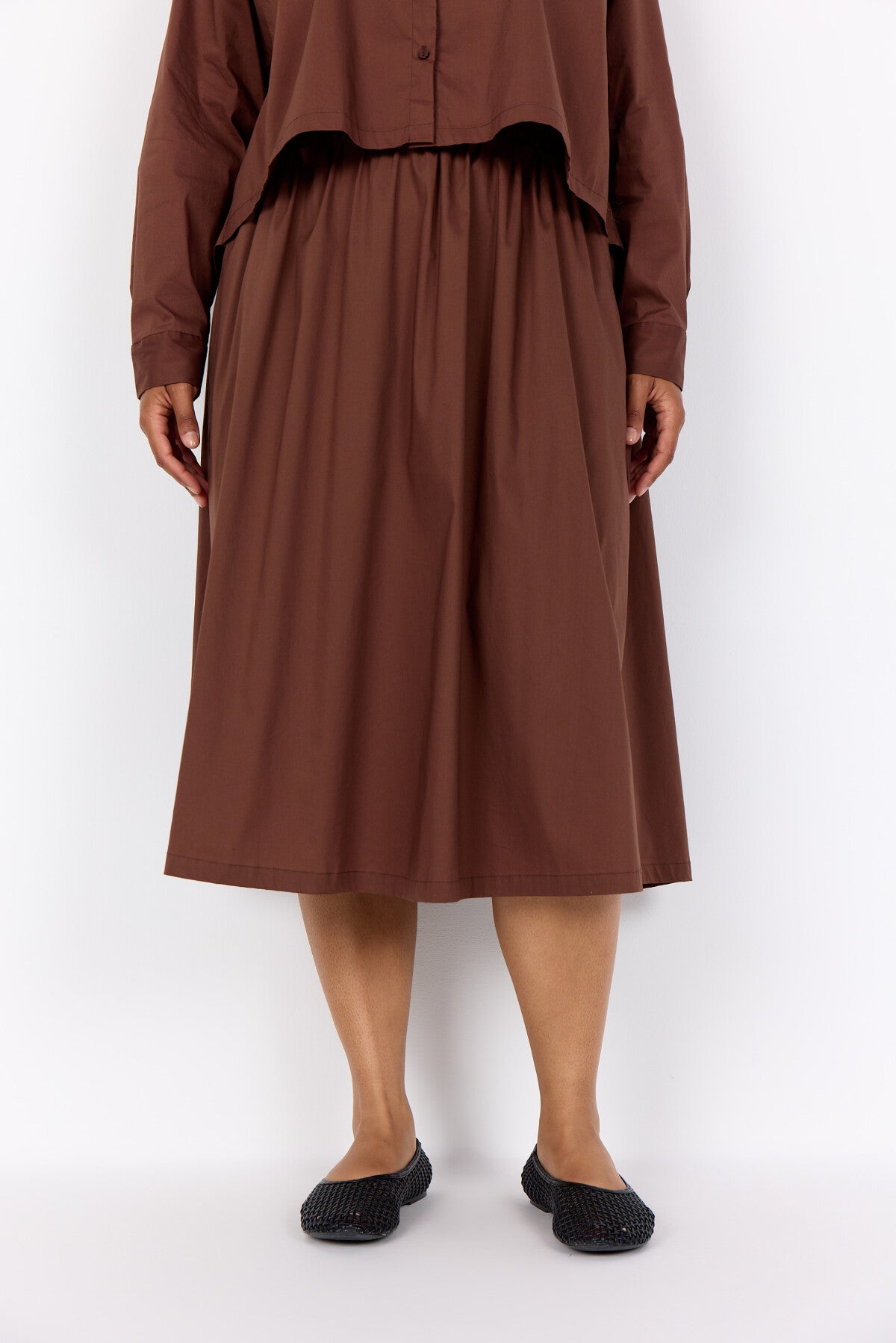 WA-SAGA 35 er en stilfuld nederdel fremstillet af 68 % økologisk bomuld, 27 % polyamid og 5 % elastan. Denne elegante nederdel har en elastisk linning for komfort og rynker for en fyldig silhuet. Sæt den sammen med en enkel top og sandaler for et cool og unikt look.
