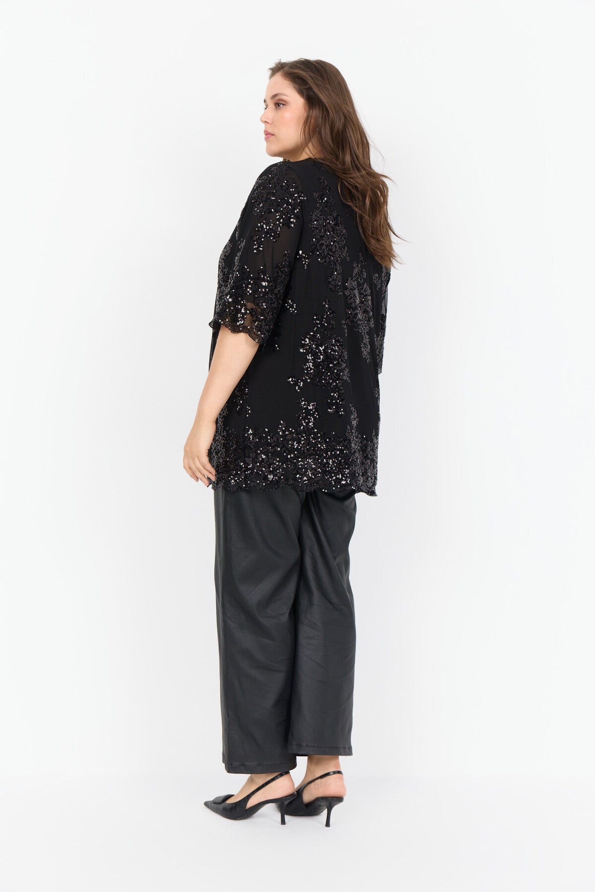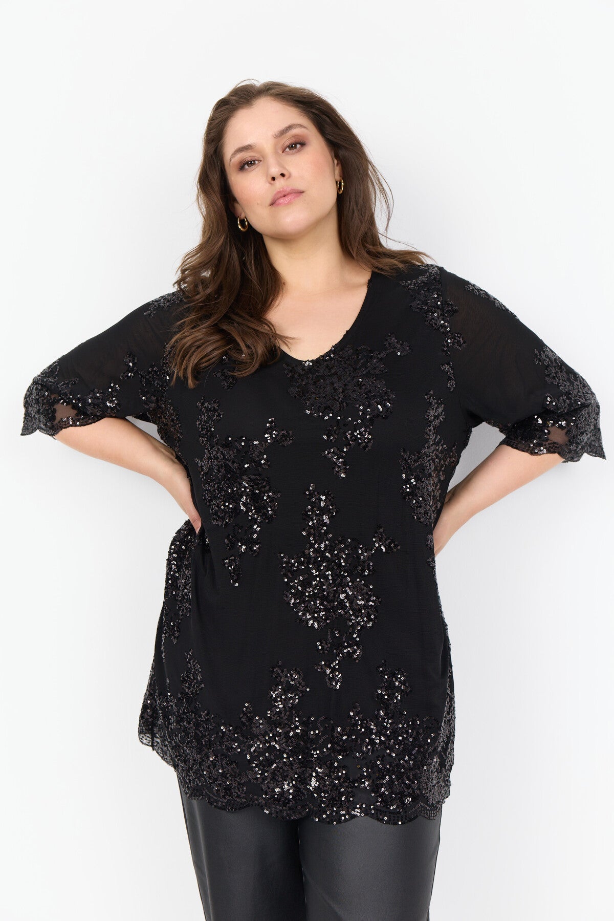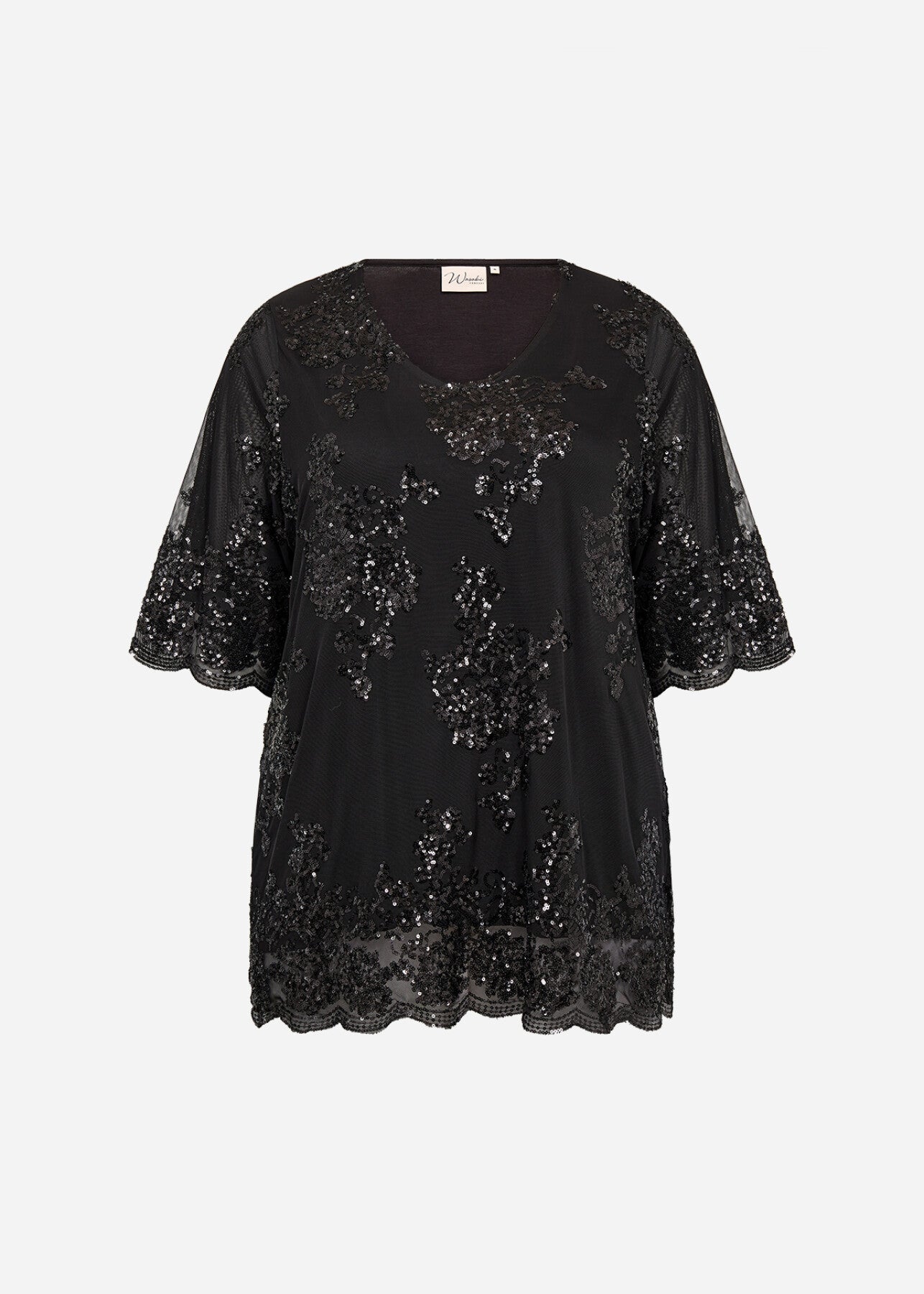WA-SUNN 1 Bluse er fremstillet af 95% polyester, 5% elastan. Denne elegante bluse har korte ærmer, pailletdetaljer, en rund halsudskæring og en afslappet pasform. Sæt den sammen med skræddersyede bukser eller en elegant nederdel for et cool look.