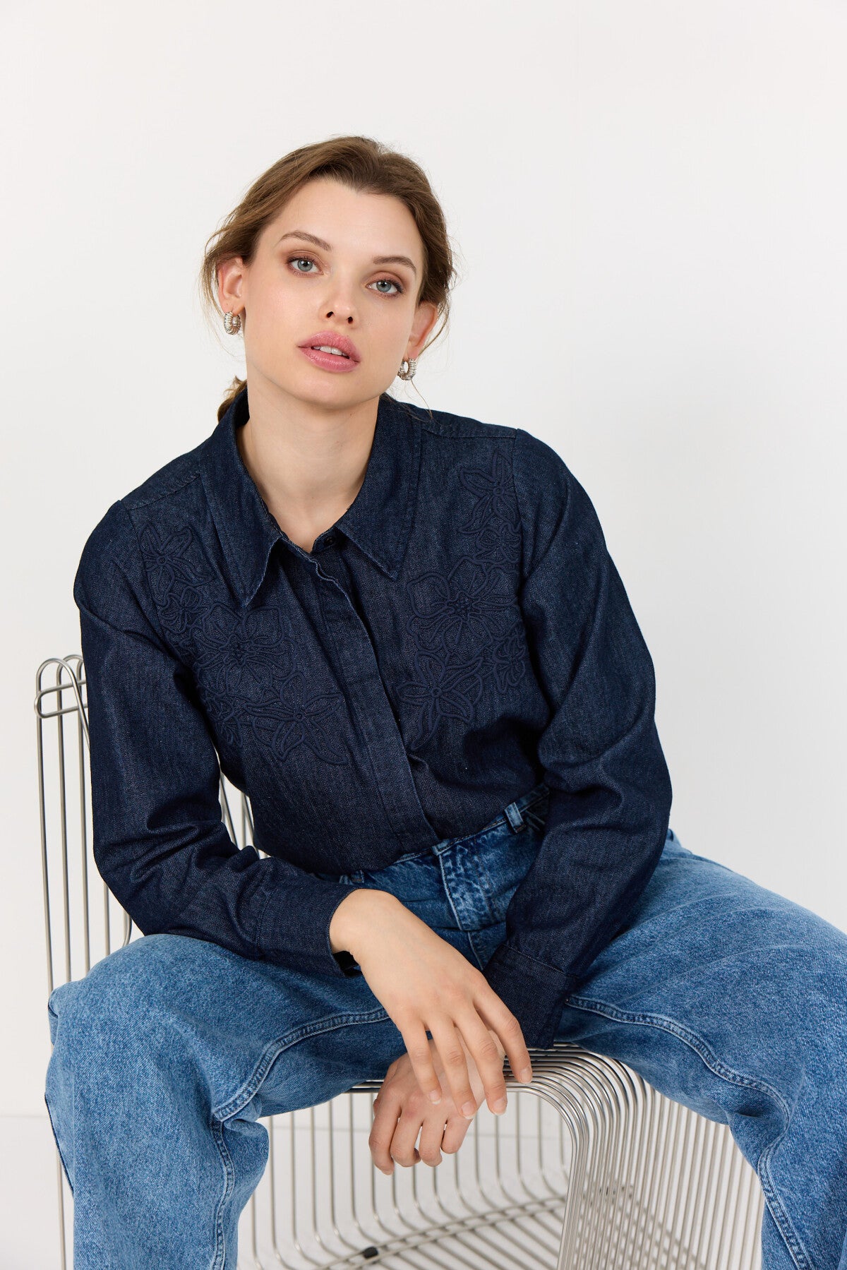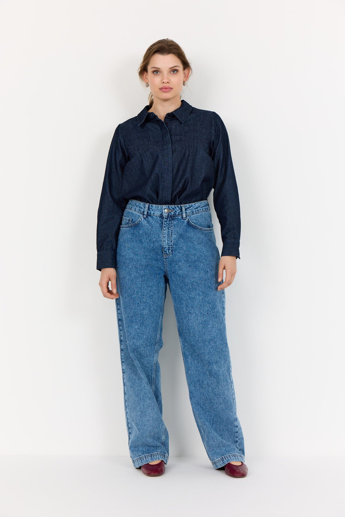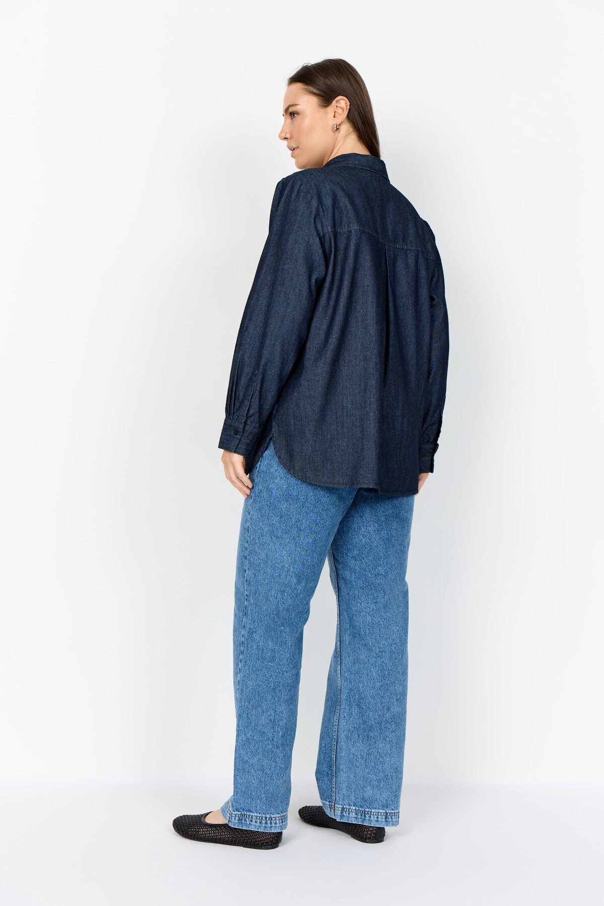 Anastasia er 171 cm høj og bruger størrelse 38;Hannah er 179 cm høj og bruger størrelse 42