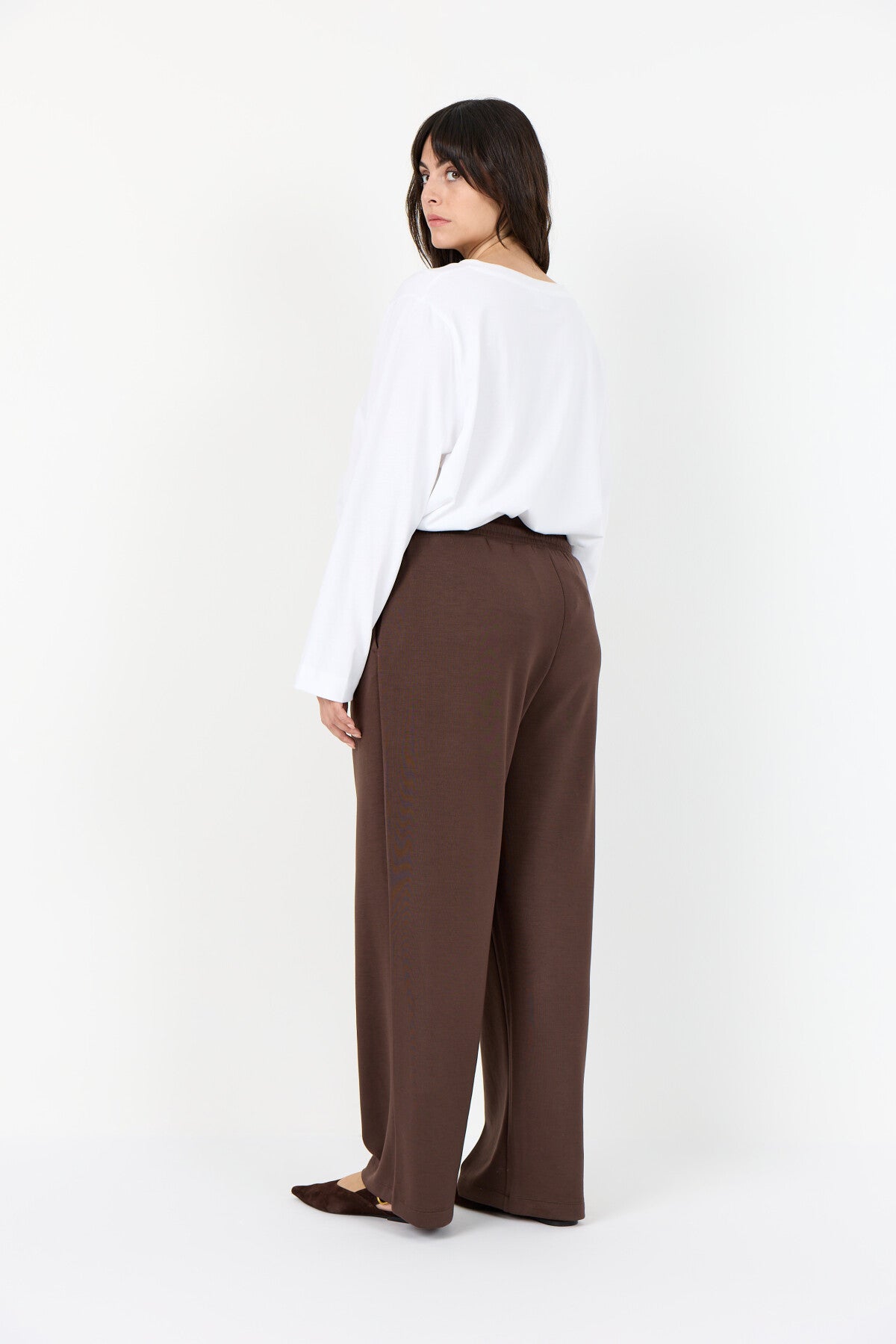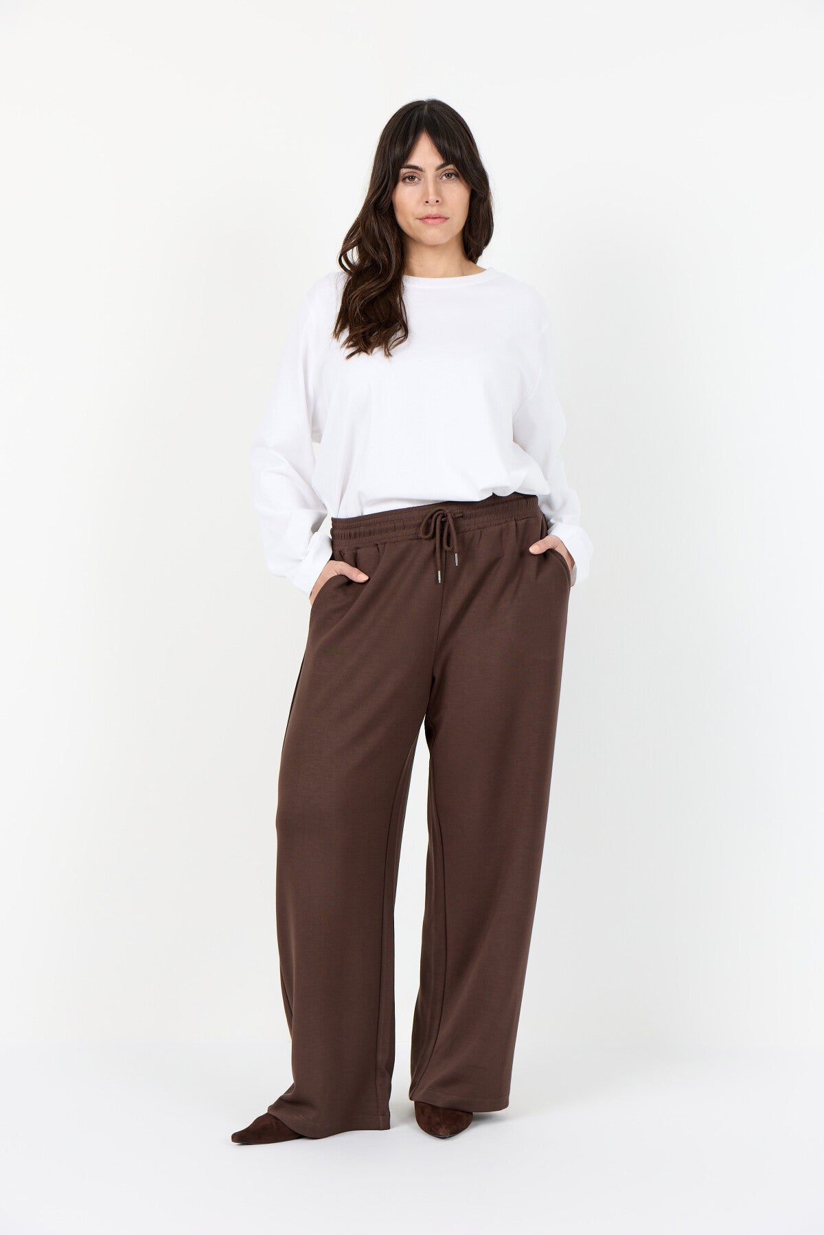 WA-SABINA 80 er behagelige bukser fremstillet af 48 % modal, 48 % polyester og 4 % elastan. Dette design har en elastisk linning med justerbare snore og en afslappet pasform i hele længden. Sæt disse elegante bukser sammen med en enkel top og sneakers for et behageligt look.
