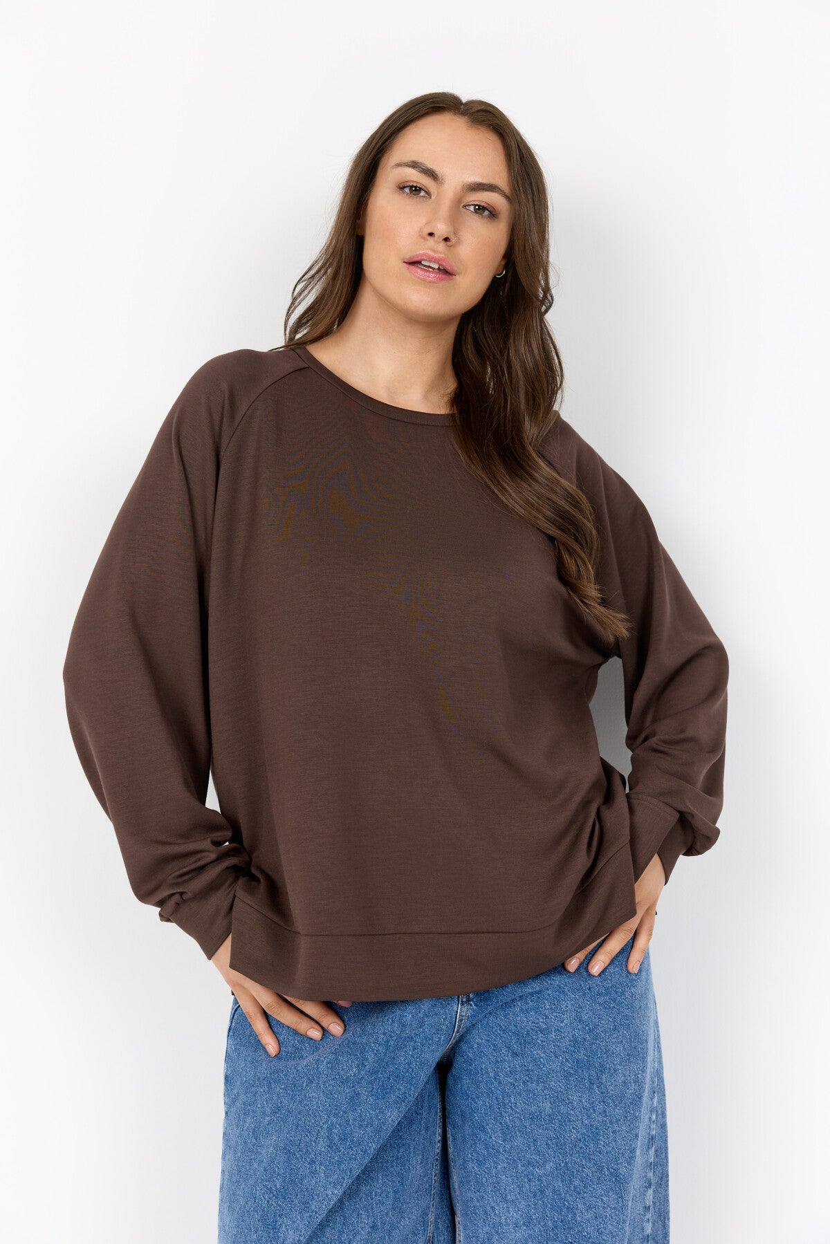 WA-SABINA 82 er en blød sweatshirt fremstillet af 48 % modal, 48 % polyester og 4 % elastan. Sweatshirten har en klassisk rund hals, ribbede manchetter og en afslappet pasform, der giver god komfort. Sæt den sammen med dine yndlingsjeans eller afslappede bukser for et cool hverdagslook.