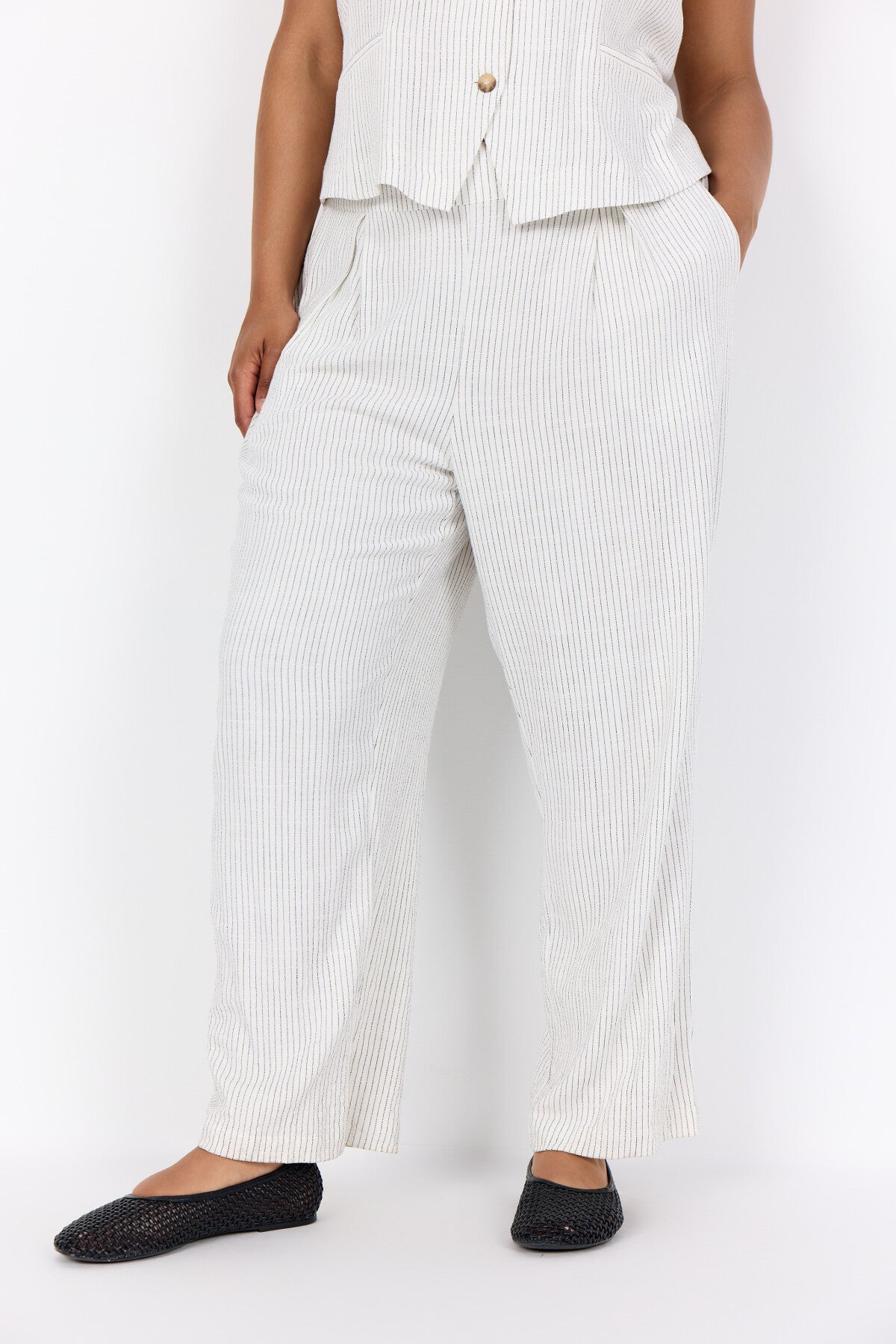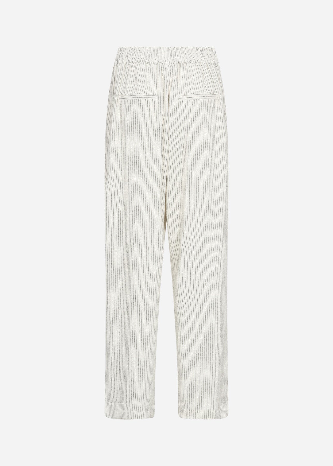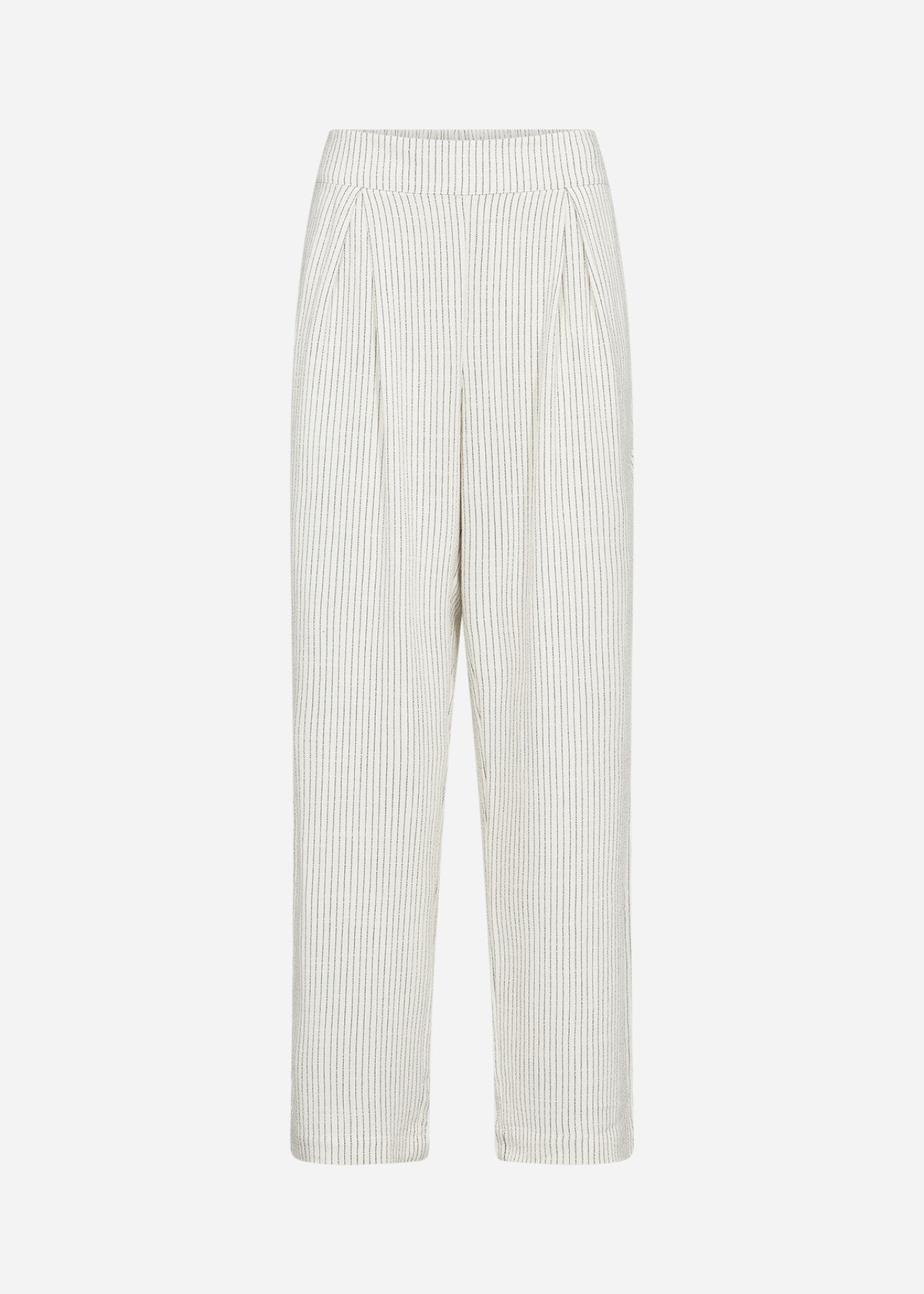 WA-SANILLA 3 er cool bukser fremstillet af 70 % LENZING™ ECOVERO™-viskose og 30 % hør. De har et stilfuldt nålestribet mønster, en elastisk linning for komfort og en afslappet pasform med en beskåret længde. Sæt dem sammen med en tætsiddende top eller en løs bluse for et cool og elegant look.