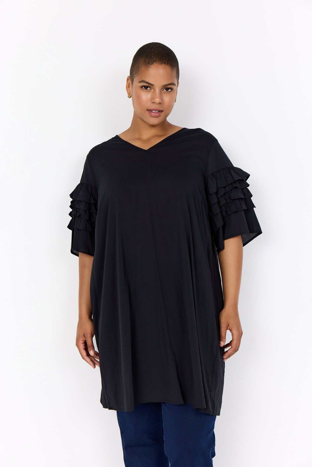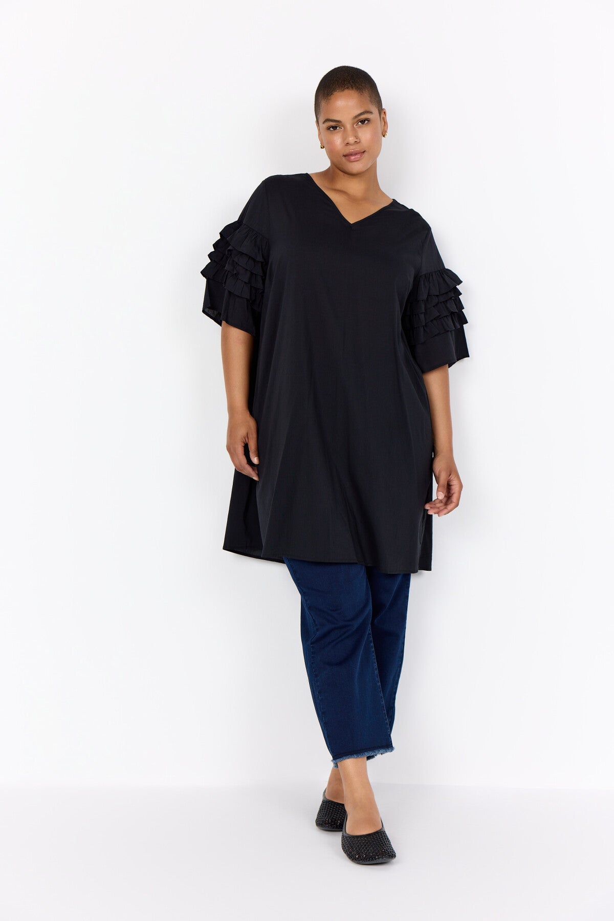 WA-NOMA 3 introducerer tunikaen, der er fremstillet af 50 % LENZING™ ECOVERO™-viskose og 50 % økologisk bomuld. Tunikaen har V-udskæring og karakteristiske korte ærmer i flere lag. Sæt den sammen med leggings, eller brug den alene for et behageligt look.