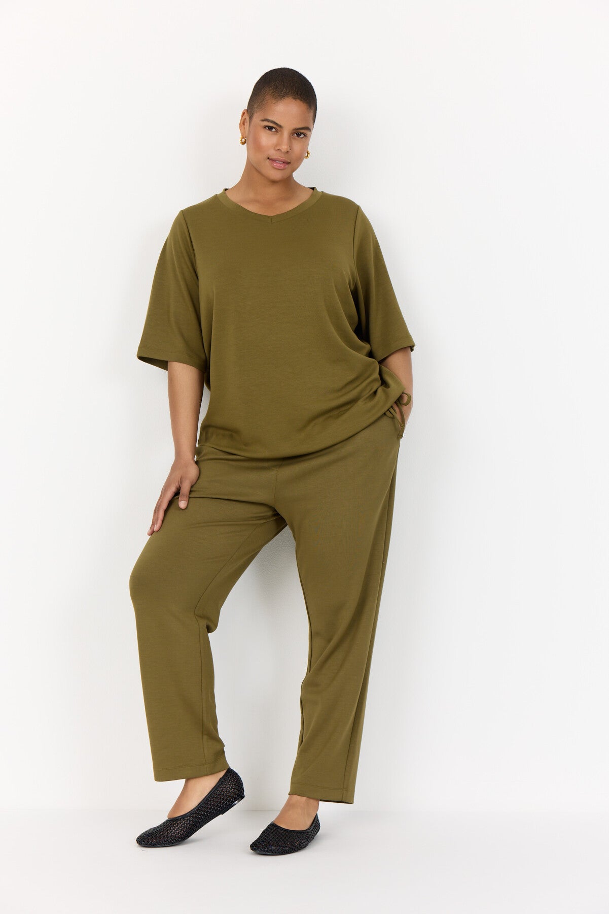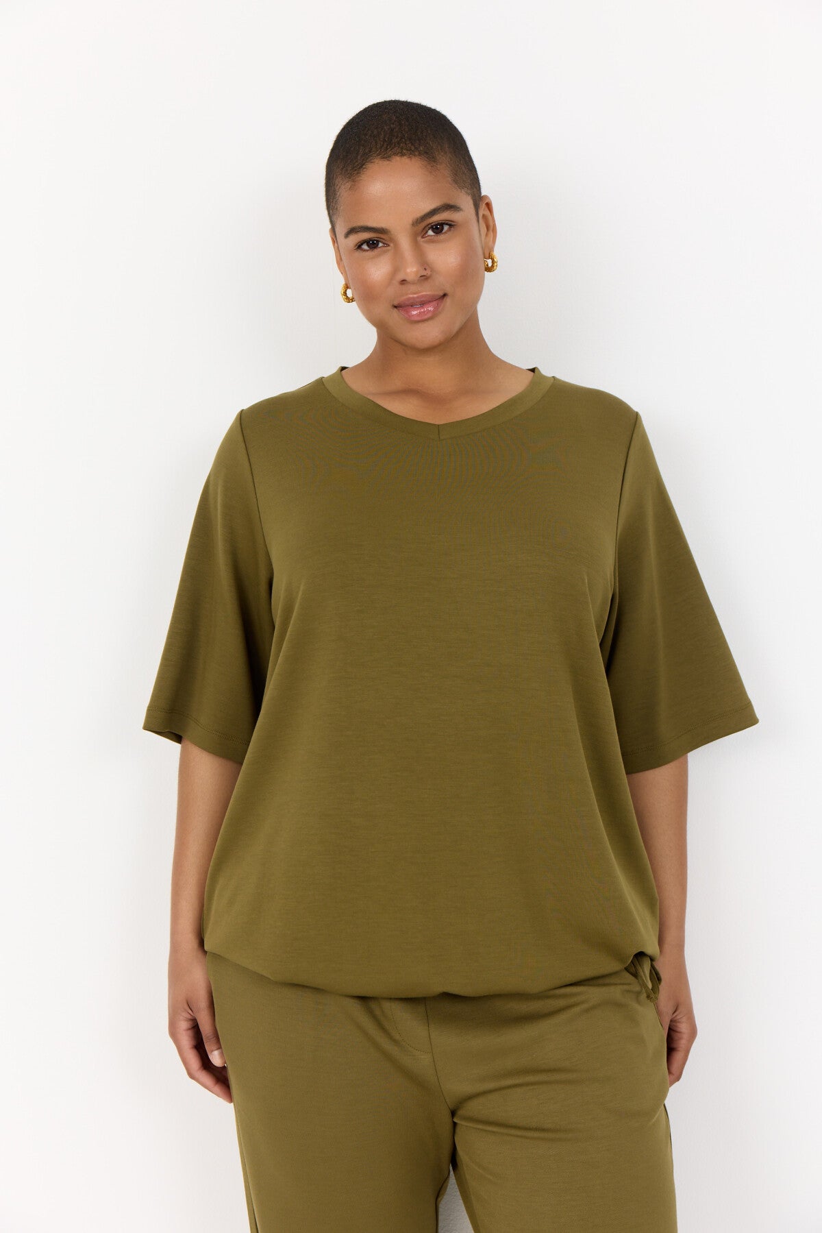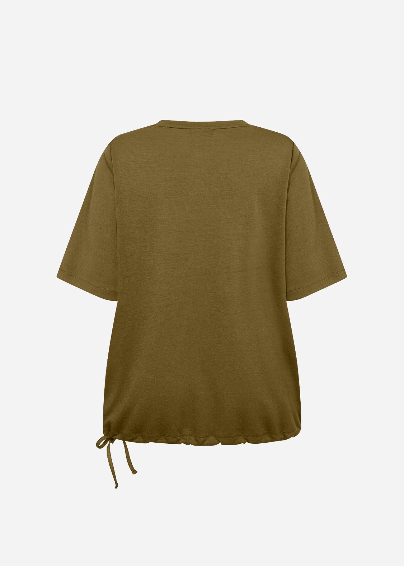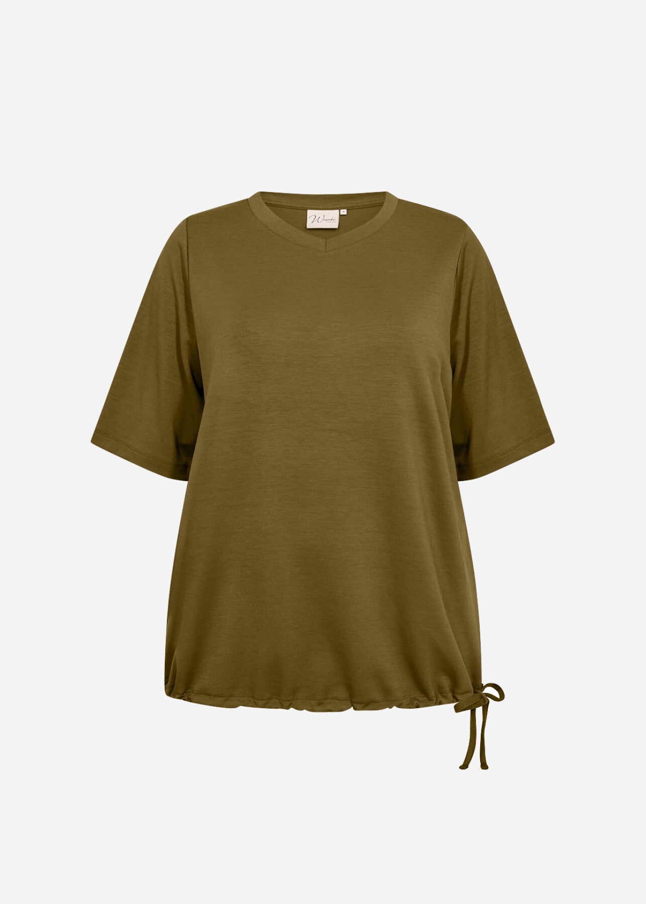 WA-SABINA 50 er en T-shirt fremstillet af 48 % modal, 48 % polyester og 4 % elastan. Den har V-udskæring, korte ærmer og en justerbar snøre forneden, så du kan tilpasse pasformen. Sæt den sammen med jeans og sneakers for et behageligt hverdagslook.