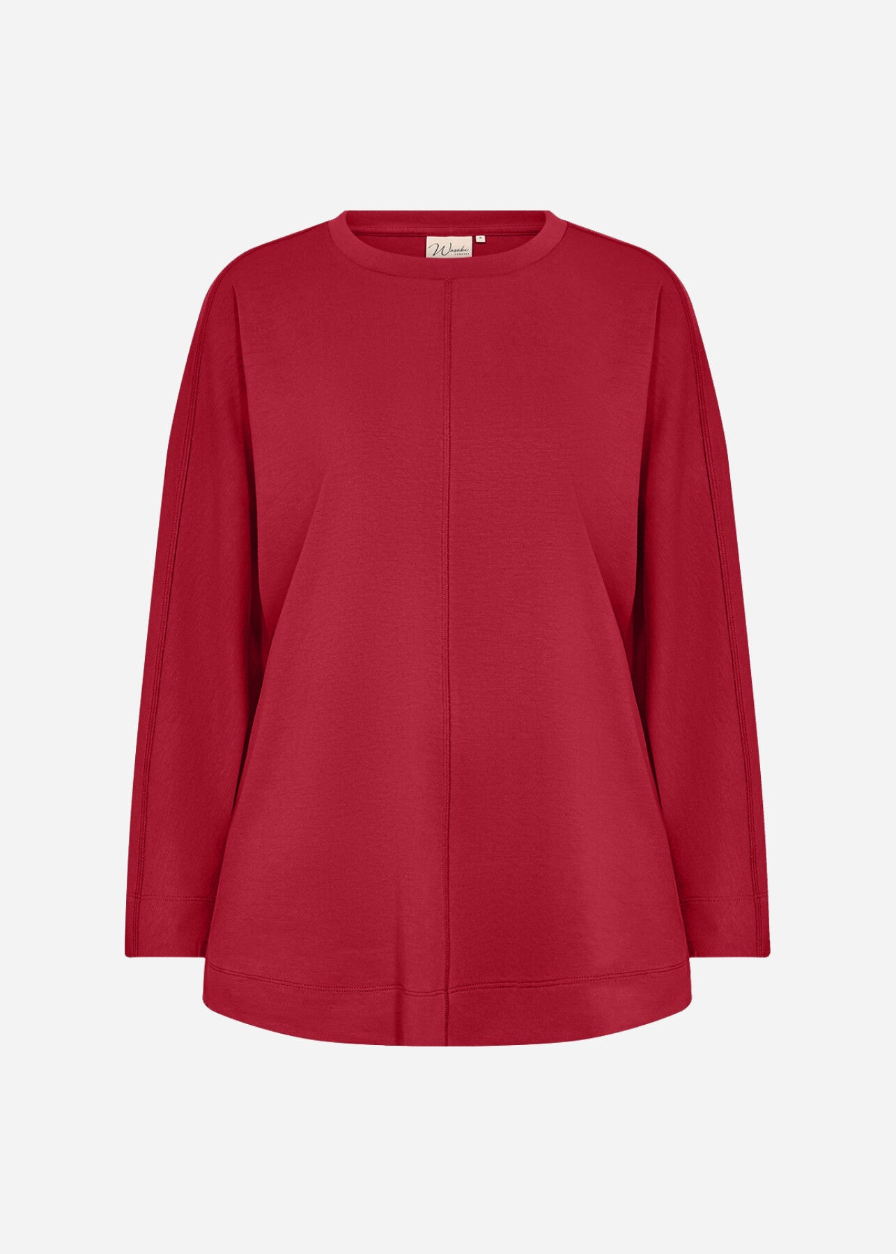 WA-SABINA 59 er en sweatshirt fremstillet af 48 % modal, 48 % polyester og 4 % elastan. Den har en rund halsudskæring, en central sømdetalje og lange ærmer med en afslappet pasform. Sæt den sammen med jeans eller afslappede nederdele for et behageligt hverdagslook.