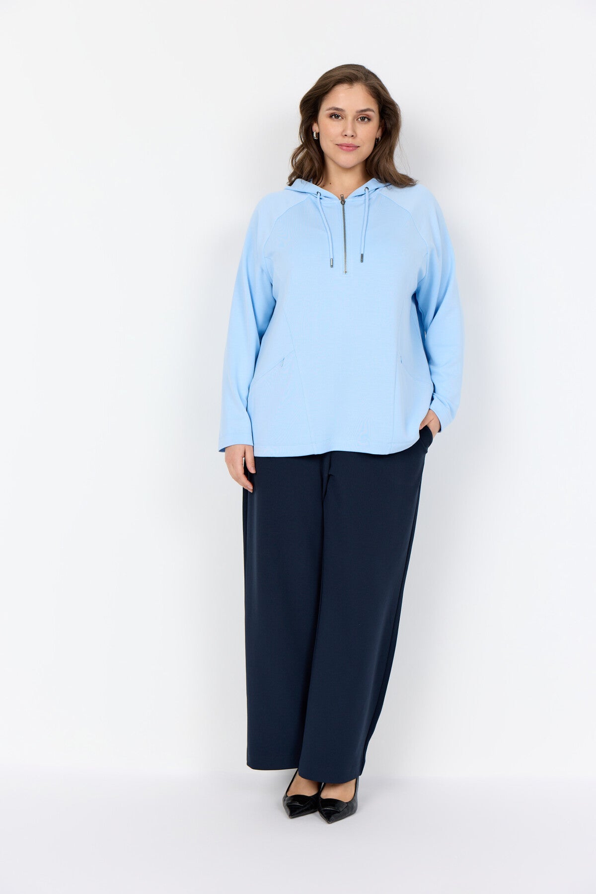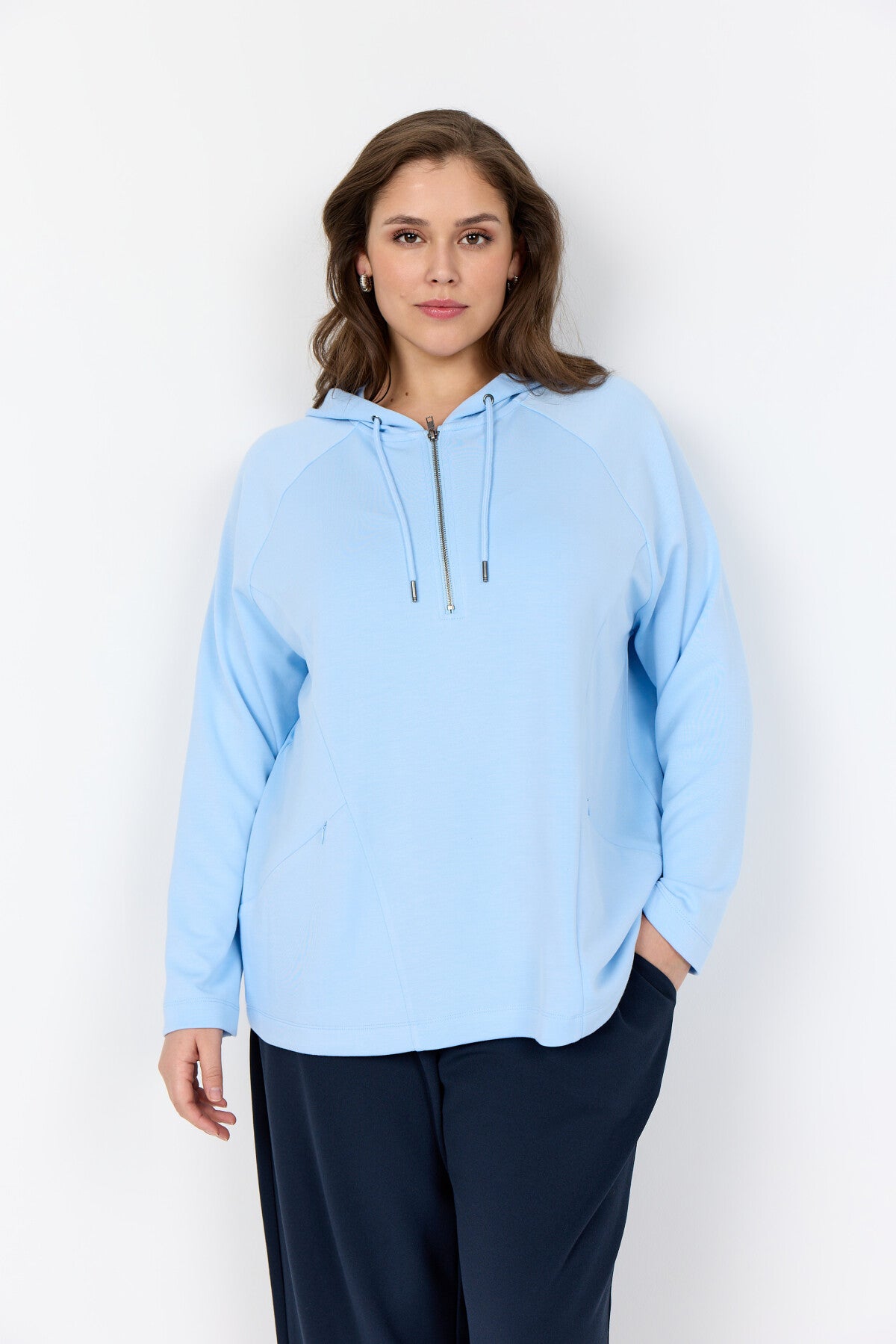 WA-SABINA 84 er en sweatshirt fremstillet af 48 % modal, 48 % polyester og 4 % elastan. Den har en hætte med justerbare snore, en halv lynlås foran og praktiske sidelommer. Sæt den sammen med afslappede jeans eller joggers for et afslappet hverdagslook.