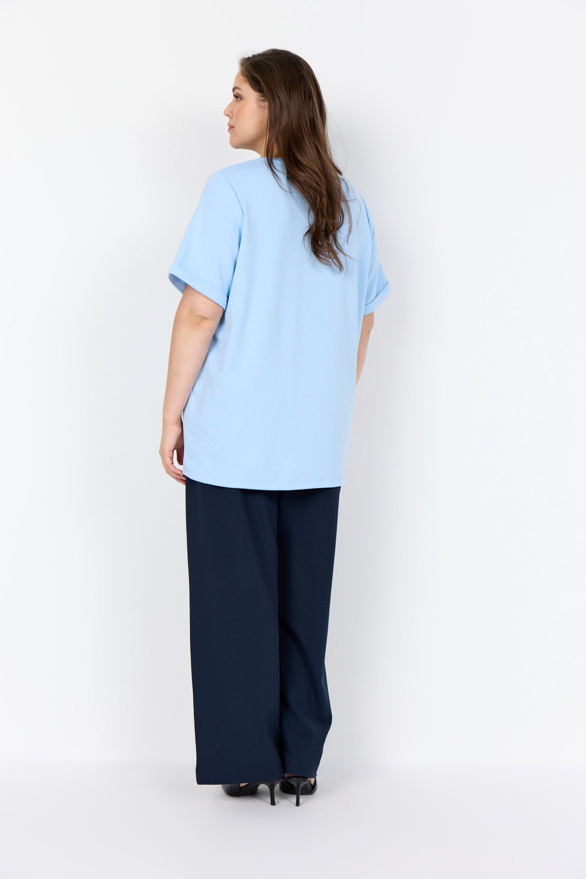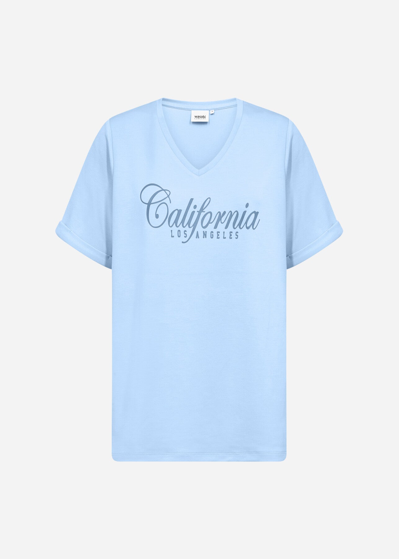 WA-SABINA 81 er en T-shirt fremstillet af 48 % modal, 48 % polyester og 4 % elastan. T-shirten har V-udskæring og oprullede ærmer, elegant ledsaget af et stilfuldt print foran. Den passer smukt sammen med både jeans og shorts for et afslappet, cool look.