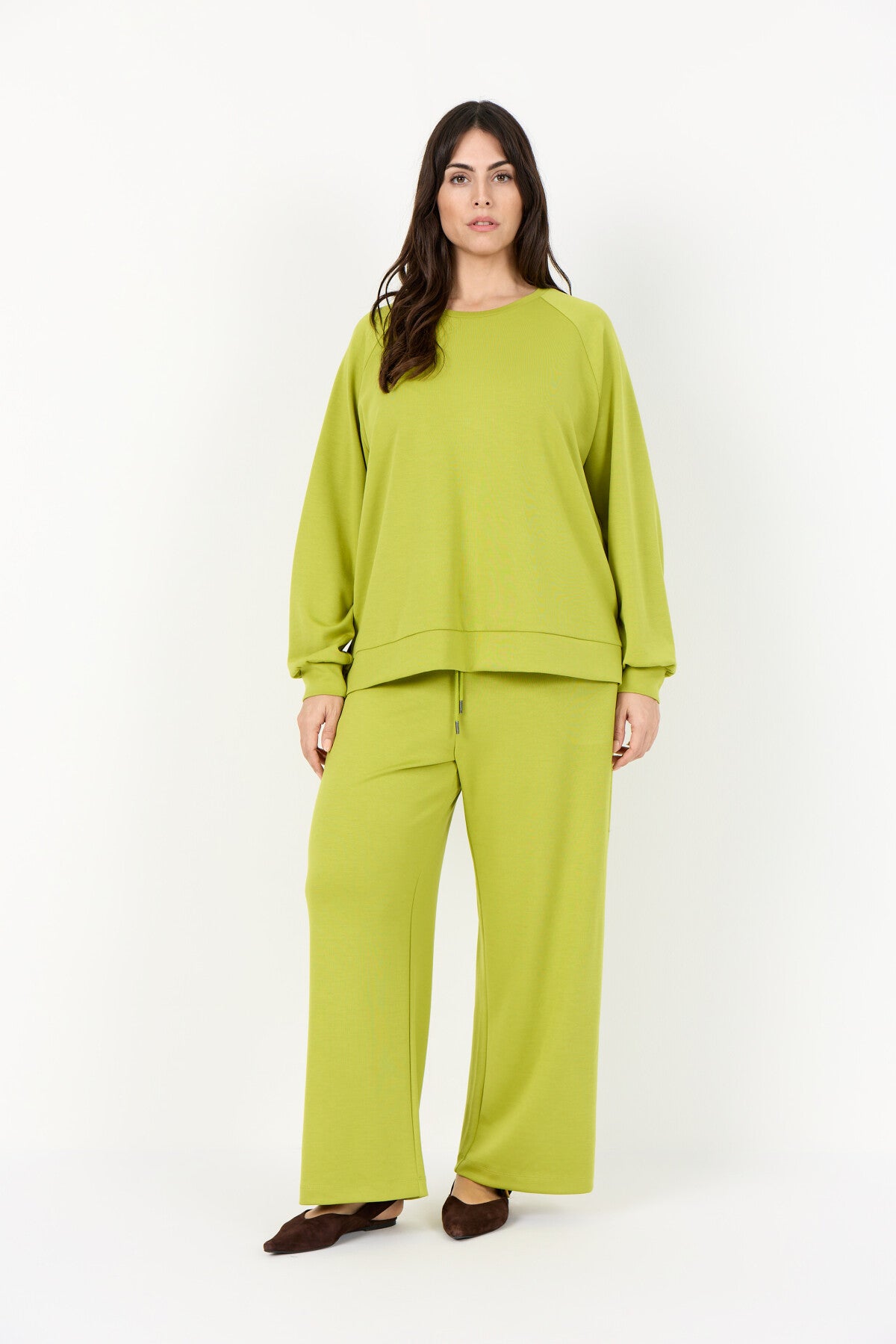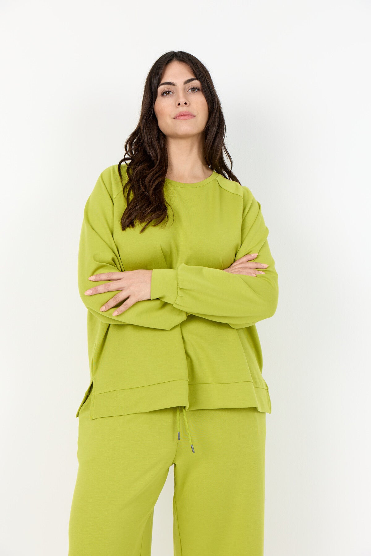 WA-SABINA 82 er en blød sweatshirt fremstillet af 48 % modal, 48 % polyester og 4 % elastan. Sweatshirten har en klassisk rund hals, ribbede manchetter og en afslappet pasform, der giver god komfort. Sæt den sammen med dine yndlingsjeans eller afslappede bukser for et cool hverdagslook.