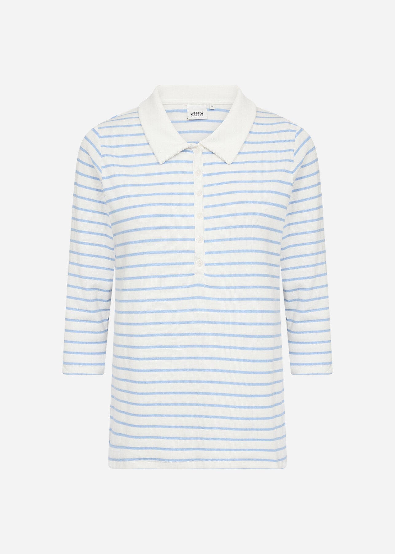 WA-SAKAR 3 er en bluse fremstillet af 65 % genanvendt bomuld, 30 % LENZING™ ECOVERO™-viskose og 5 % elastan. Den har en klassisk halsudskæring med krave, knaplukning og trekvartærmer med et stribet print, der giver et friskt look. Sæt den sammen med din yndlingsdenim eller skræddersyede bukser for et elegant touch.