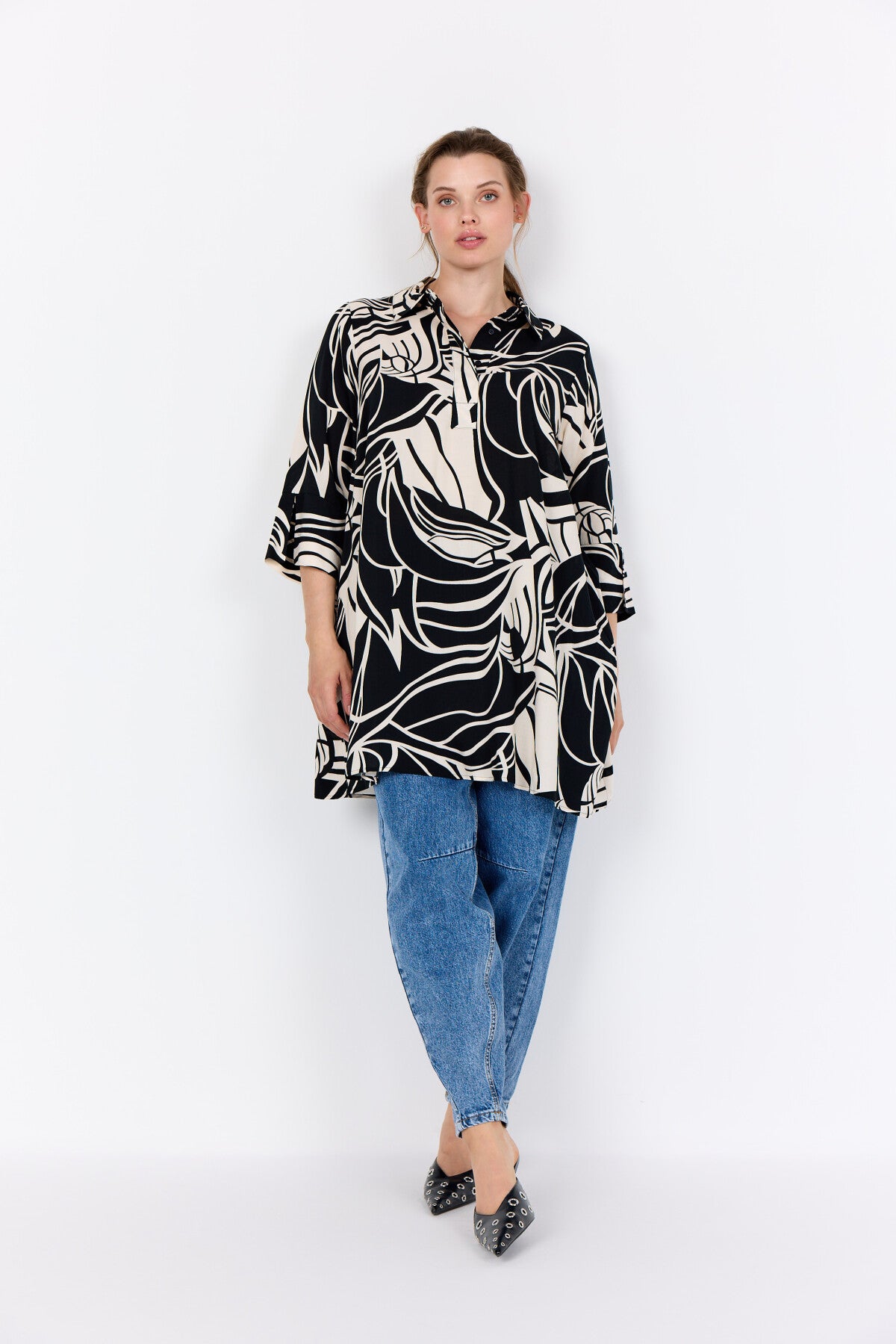 WA-SAMENA 3 er en dejlig tunika fremstillet af 100 % LENZING™ ECOVERO™-viskose. Denne elegante tunika har en klassisk krave, knapstolpe og et dristigt print med kontrasterende mønstre. Sæt den sammen med minimalistisk tilbehør og dit yndlingsfodtøj for at få et unikt og stilfuldt look.