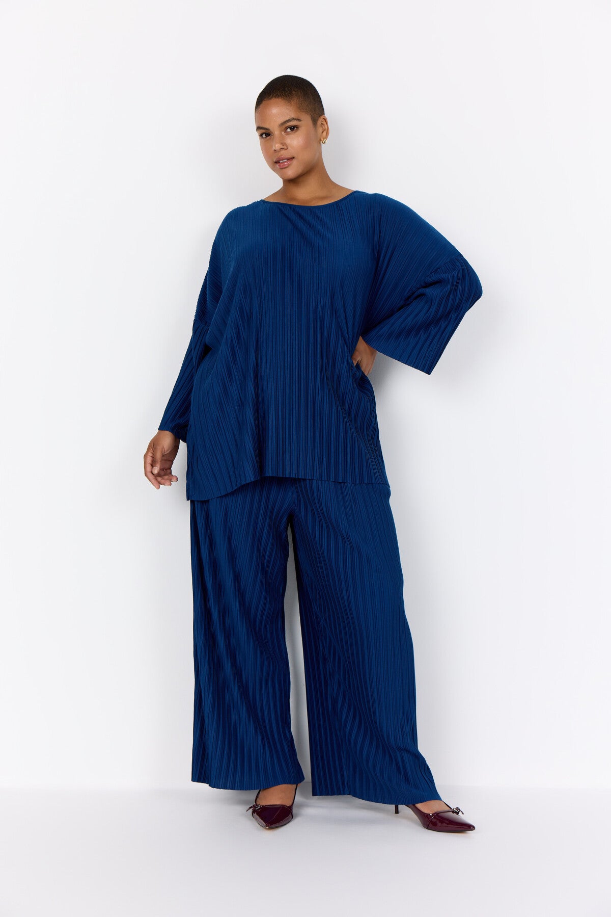 WA-Scarlet 1 er en elegant bluse fremstillet af en skøn blanding af genbrugspolyester og viskose. Blusen har en feminin bådudskæring, 7/8 ærmer, et plisseret design og en let pasform. Style denne skønne bluse med nogle klassiske bukser og et par loafers for et stilfuldt look.