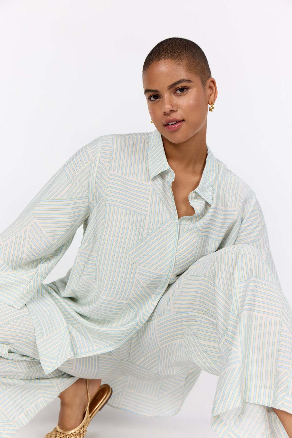 WA-SEMINA 2 er en enkel skjorte fremstillet af 82 % LENZING™ ECOVERO™-viskose og 18 % polyamid. Designet har en klassisk krave og knaplukning foran med et elegant geometrisk print og en afslappet pasform, der giver en behagelig fornemmelse. Sæt den sammen med skræddersyede bukser eller jeans for et stilfuldt outfit.